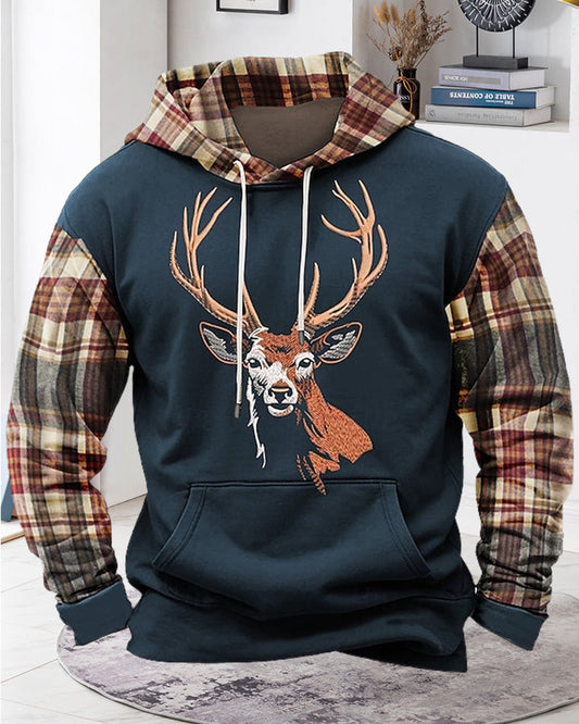 Herren Sweatshirt mit Kapuze und Hirsch-Motiv