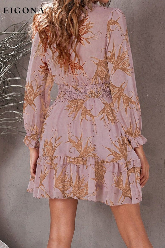 Geblümtes Minikleid mit tiefem V-Ausschnitt und Volantärmeln