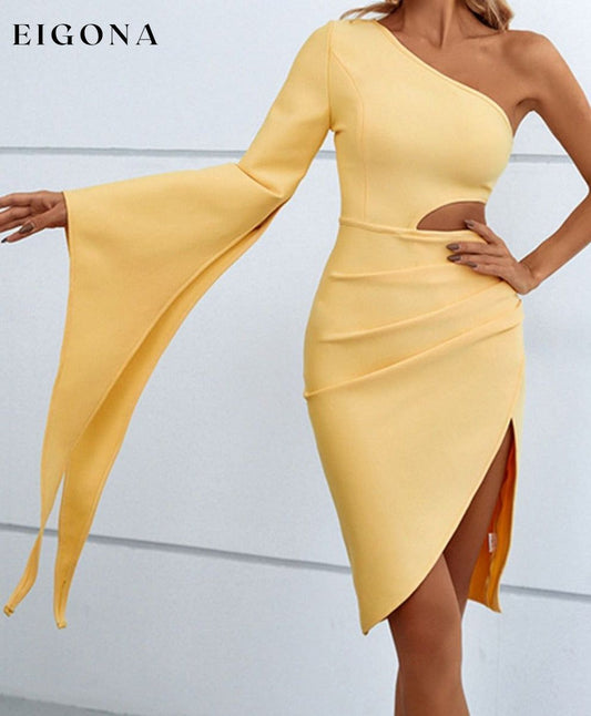 One-Shoulder-Kleid mit Schlitz und ausgestellten Ärmeln und Ausschnitten
