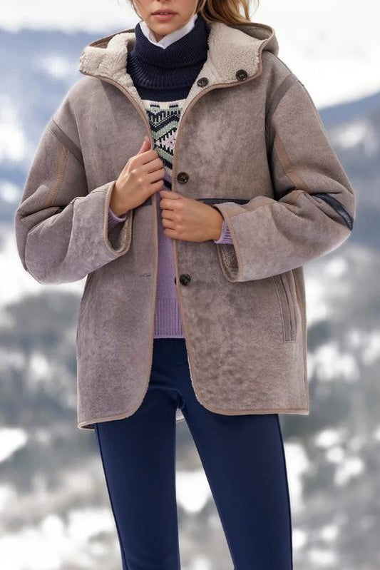 Lässige, warme Pelz-Kontrast-Kapuzenjacke für Damen