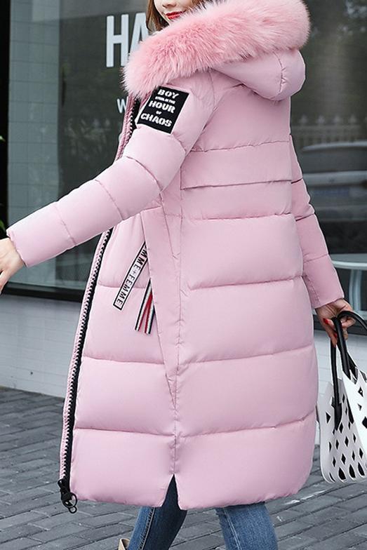 Verdickter, mittellanger Baumwollmantel mit großem Pelzkragen und Aufdruck für Damen