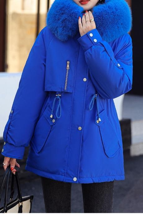 Langer, verdickter Baumwollmantel für Damen mit großem Pelzkragen