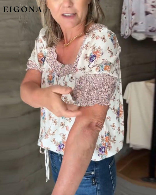 Bedrucktes, kurzärmliges Oberteil mit eckigem Ausschnitt