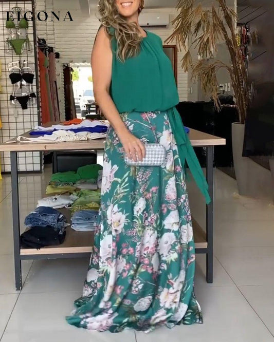 Elegantes ärmelloses Zweiteiler-Set mit Blumendruck