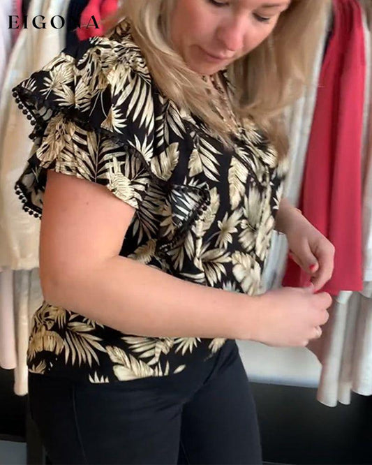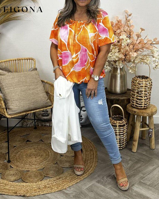 Geblümtes, kurzärmliges Oberteil mit Rundhalsausschnitt