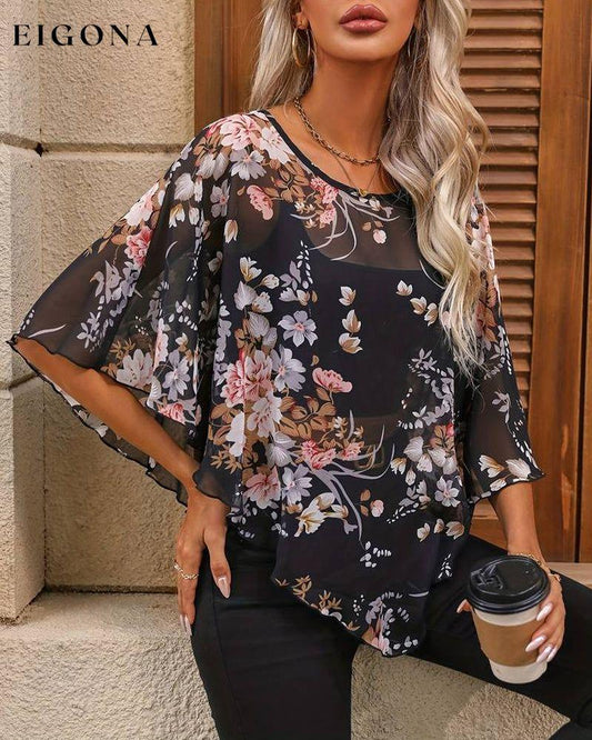 Geblümte asymmetrische Bluse mit Dolman-Ärmeln