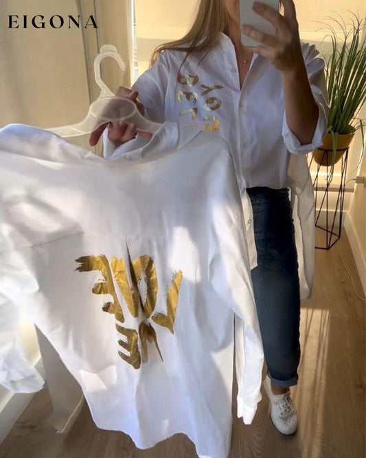 Bedrucktes T-Shirt mit schräg geknöpftem V-Ausschnitt