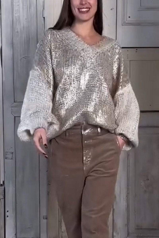 Langärmliger Pullover mit V-Ausschnitt für Damen