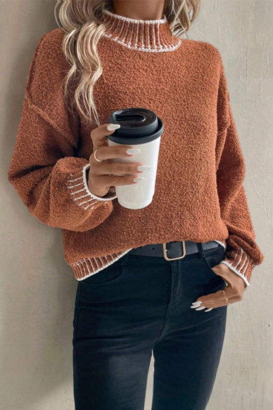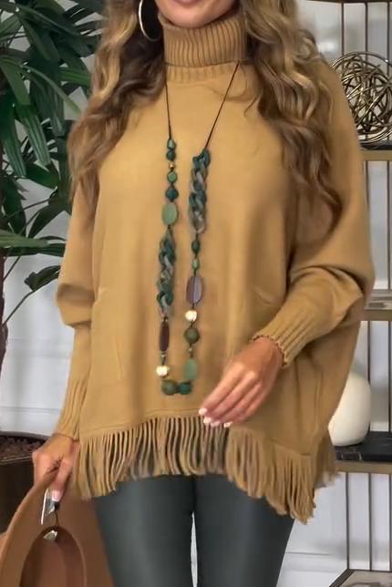 Lässiger Pullover für Damen mit hohem Kragen und Quaste
