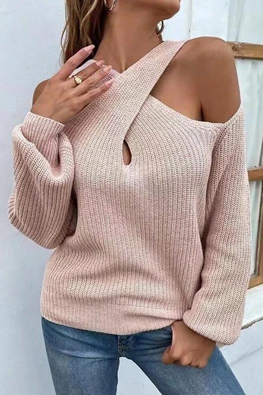 Lässiger, einfarbiger Pullover mit V-Ausschnitt für Damen