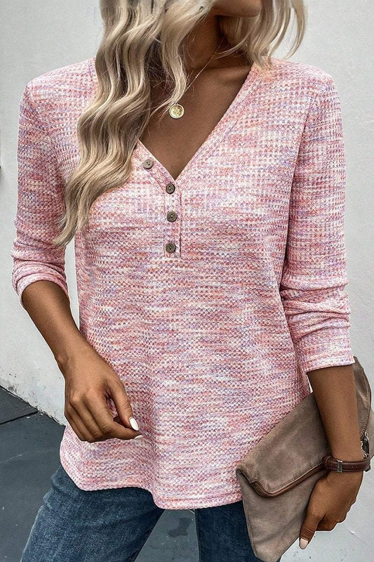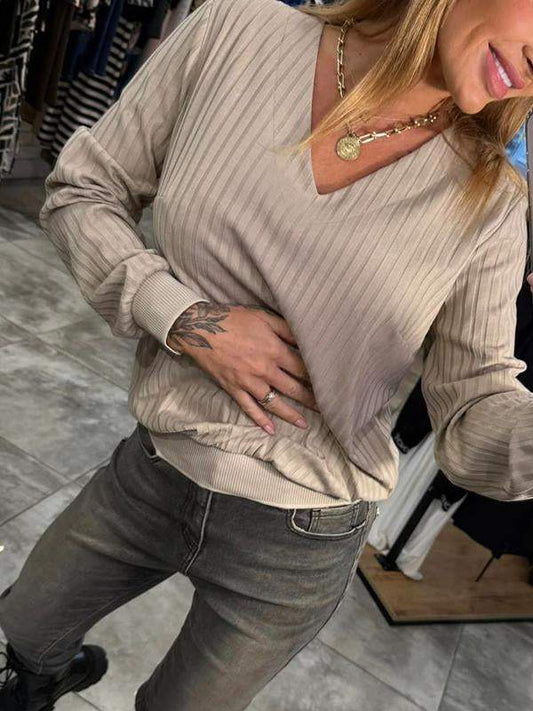 Lässiges Pullover-Oberteil mit Waffelstrick und V-Ausschnitt für Damen