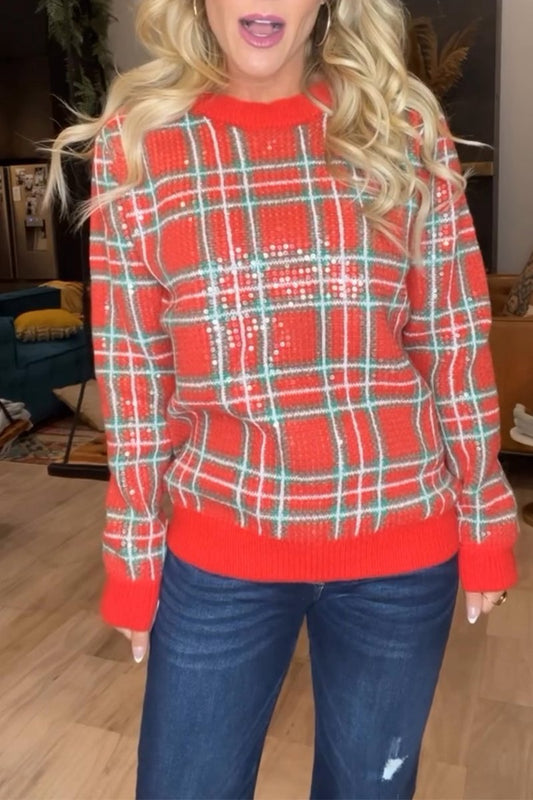 Weihnachtspullover mit Rundhalsausschnitt und Pailletten für Damen