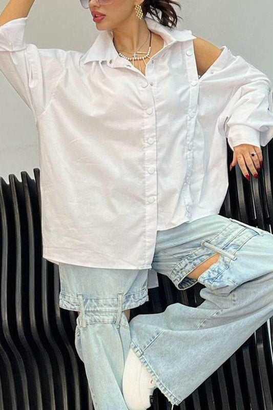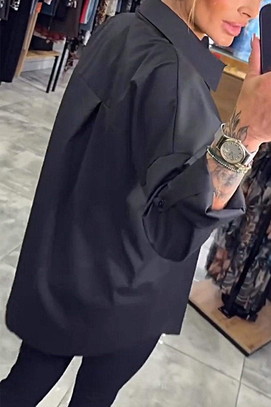 Lässiges, einfarbiges Zweireiher-Hemd mit Revers für Damen
