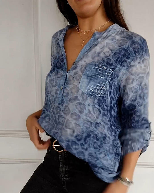 Button-Down V-Neck Color-Blocked Sweatshirt