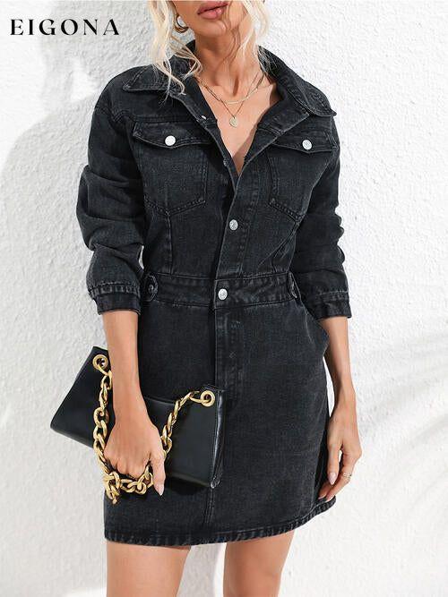 Buttoned Drop Shoulder Sweater Dress, Casual Long Sleeve Dresses