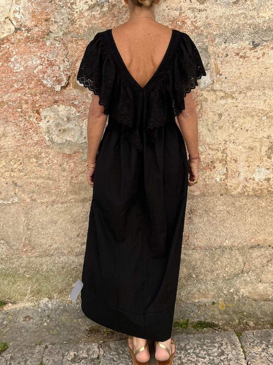 Solid color lace elegant V-neck dress