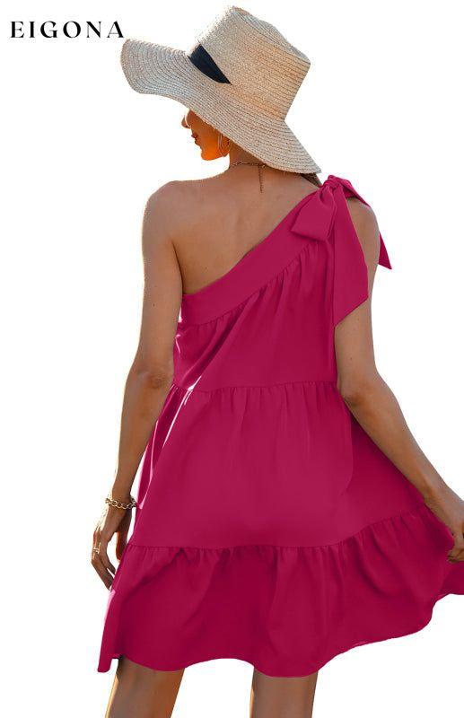 Women's Diagonal Neck Solid Color Ruffle Dress