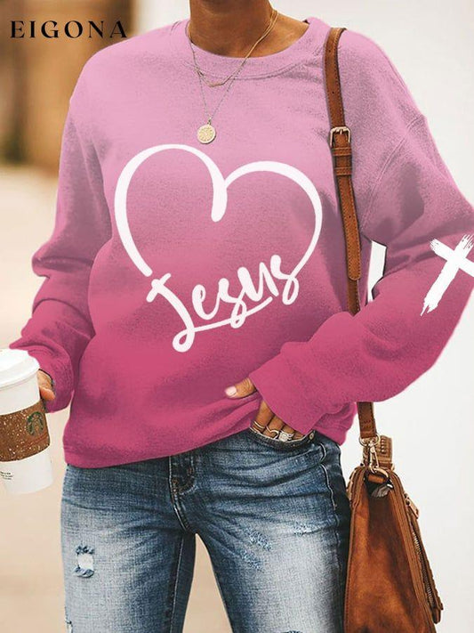 Women's JESUS Heart-shaped Cross Print Sweatshirt