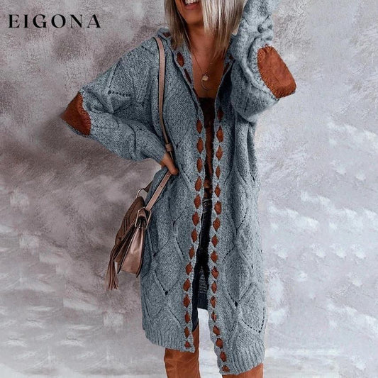 Women's Knitted Color Block Hooded Cardigan Sweater