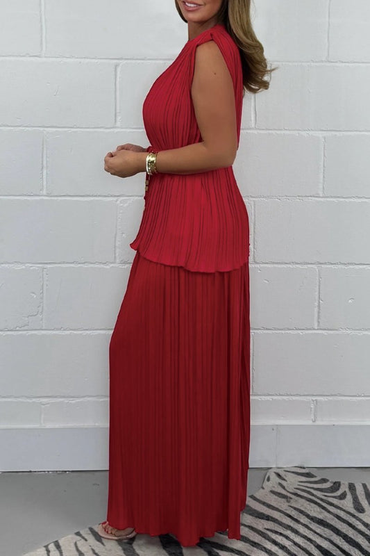 Women's Pleated Beaded Tie Waist Top & Trouser Co-Ord