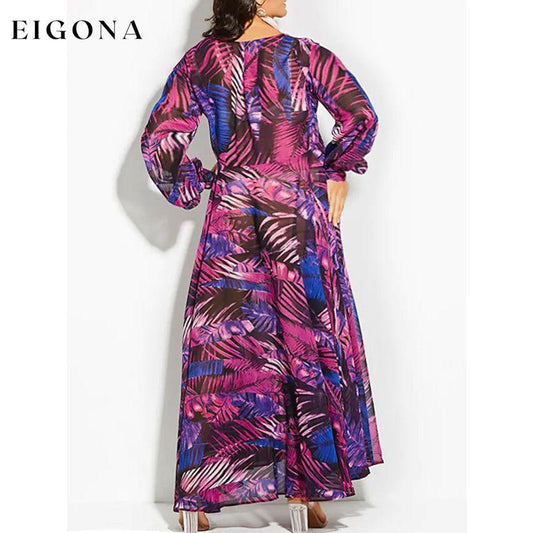 Women's Plus Size A Line Dress Floral V Neck Print Lantern Sleeve