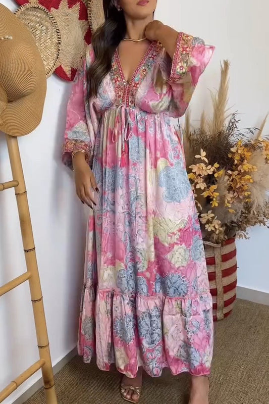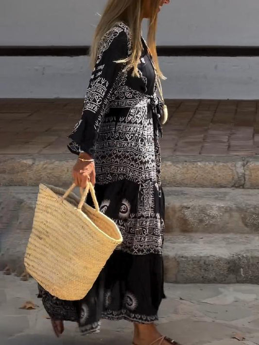 Women's Printed Long Sleeve V-Neck Dress