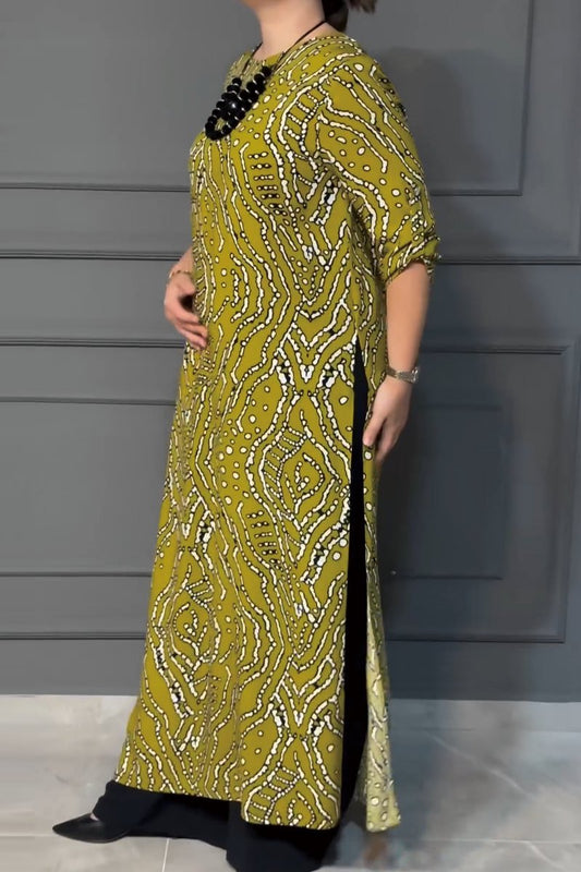 Women's printed long slit dress