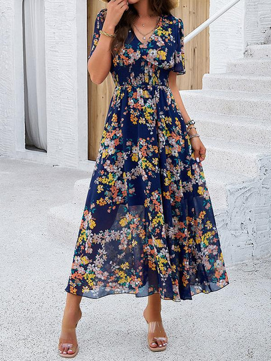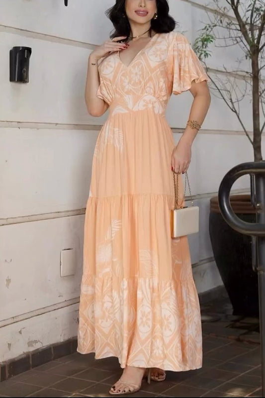 Women's printed V-neck dress