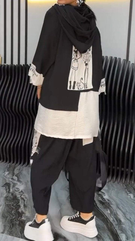 Women's Printed Contrasting Tops and Pant Suits
