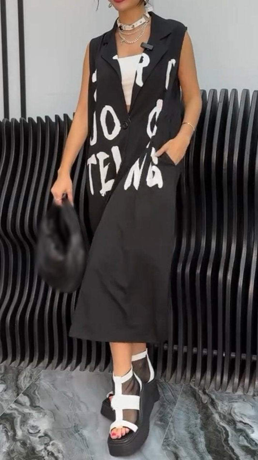 Women's Printed Lapel Sleeveless Dress