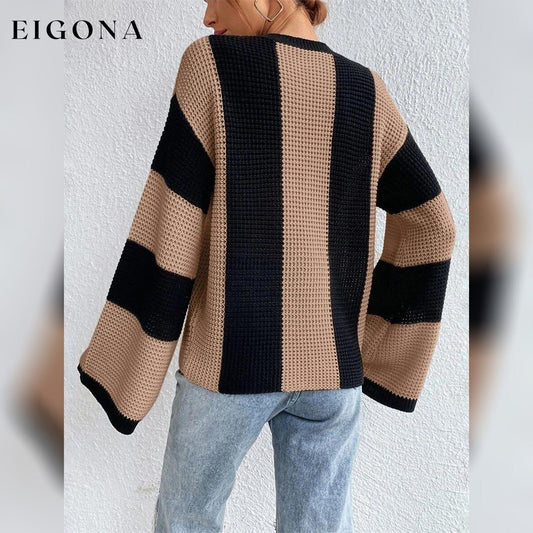 Women's Pullover Ribbed Knit Patchwork Striped Sweater