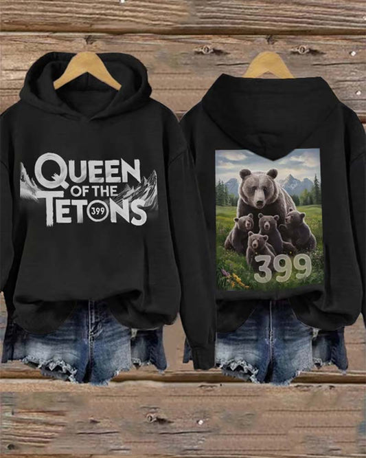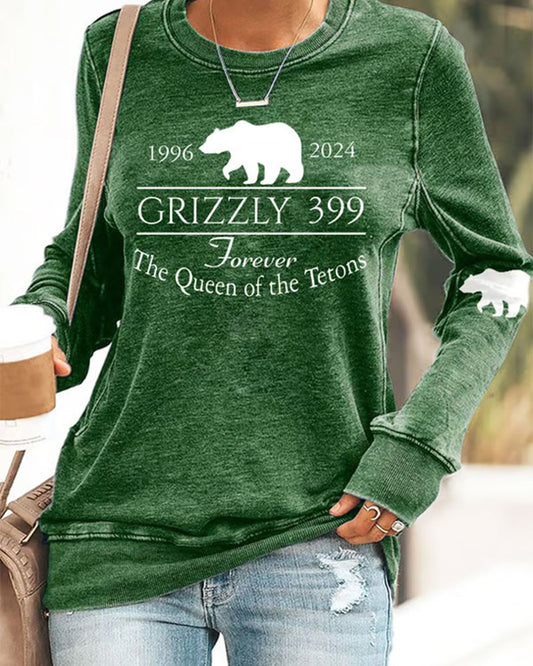 Women's Retro Grizzly 399 Forever The Queen Of The Tetons Print Sweatshirt
