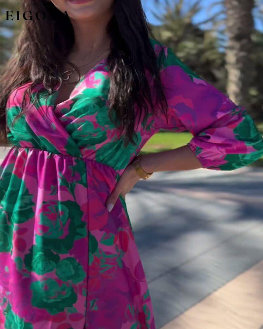 Women's Retro Long Sleeve Waist Slimming Midi Dress