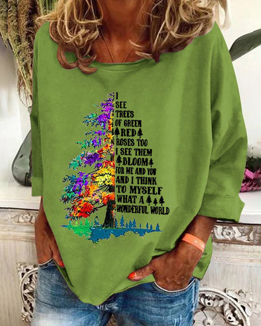 Women'S Retro Hippie Christmas I See Trees Of Green, Red Roses Too I See Them Bloom For Me And You And I Think To Myself What A Wonderful World Print Sweatshirt