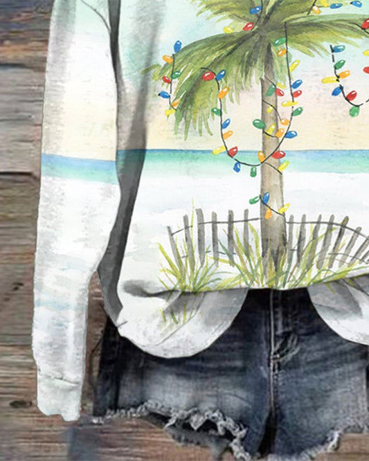 Women's Retro Florida Christmas Watercolor Palm Tree Print Sweatshirt