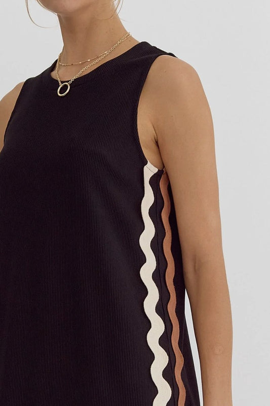 Women's ribbed contrast color wave ribbon sleeveless long dress