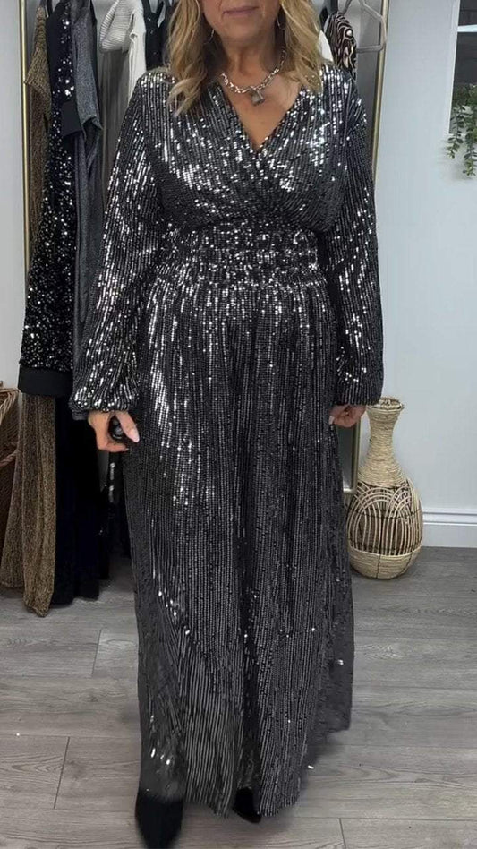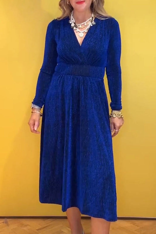 Women's V-neck Slim Waist Shiny Maxi Dress