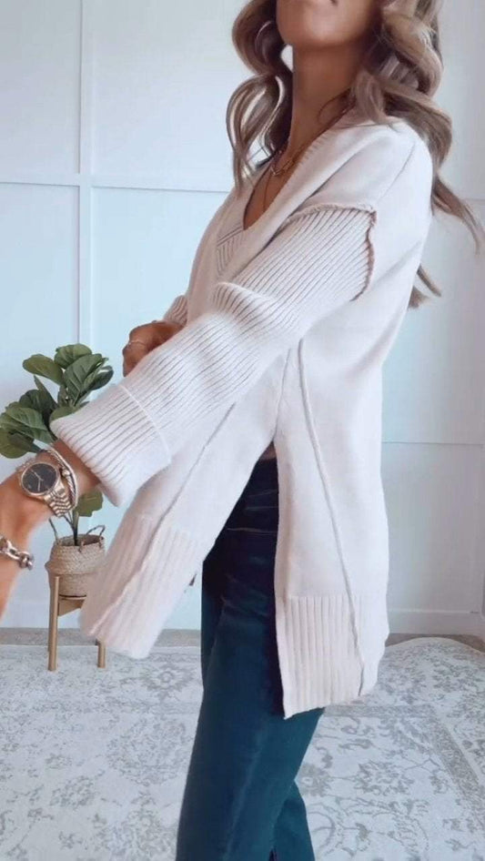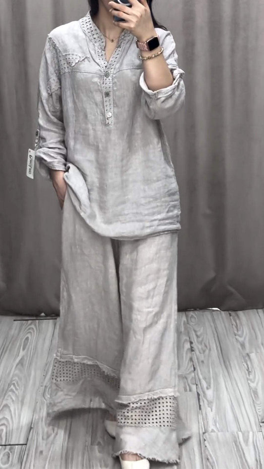 Women's V-neck Solid Color Long-sleeved Hollow Stitching Suit