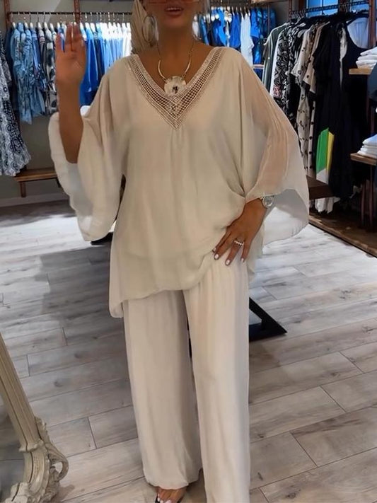 Women's V-neck Solid Color Chiffon Two-piece Suit