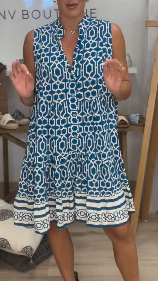 Women's V-Neck Spaghetti Strap Mini Swing Skater Dress