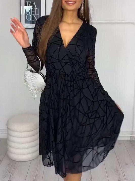 Women's V-neck Solid Color Lantern Sleeve Chiffon Dress