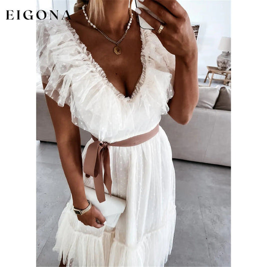 Women's V-neck Solid Color Lotus Leaf Sleeve Dress