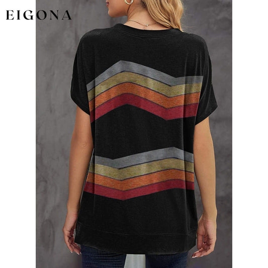 Womens Casual Tunic Tops Short Sleeve Crewneck Side Split Color Block T-Shirt