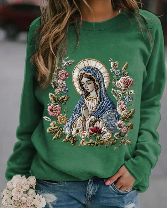 Character floral print crew neck sweatshirt
