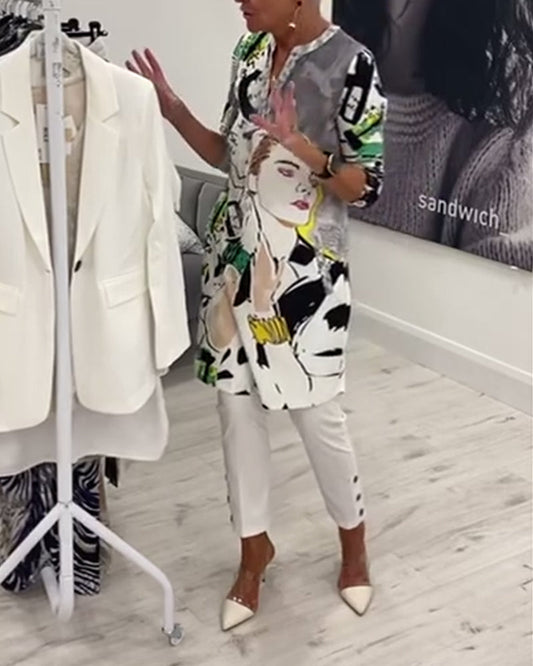 Character print button casual long top