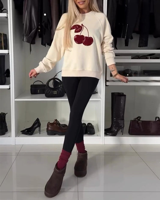 Cherry print long-sleeved sweatshirt
