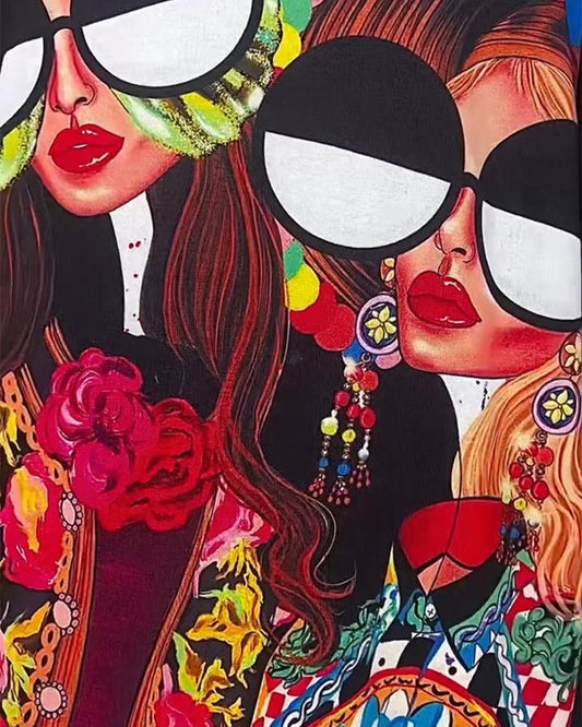 Character floral print V-neck T-shirt