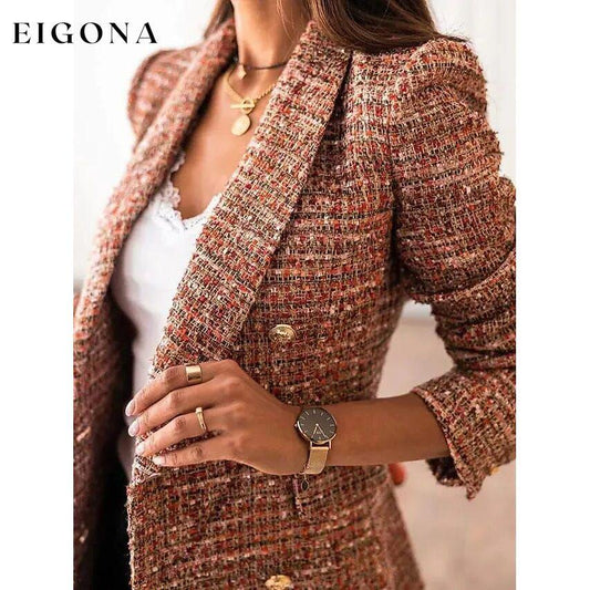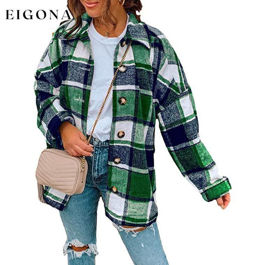 Women's Casual Woolen Long Sleeve Button Down Plaid Jacket