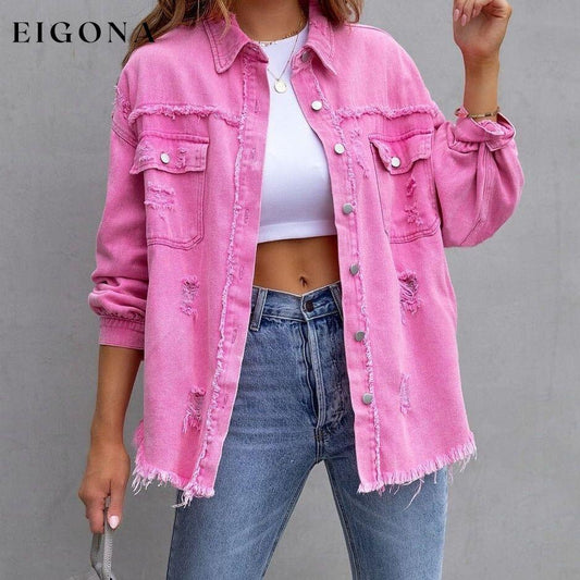 Women's Denim Jacket Long Sleeve Plaid Button Down Shirts Shacket