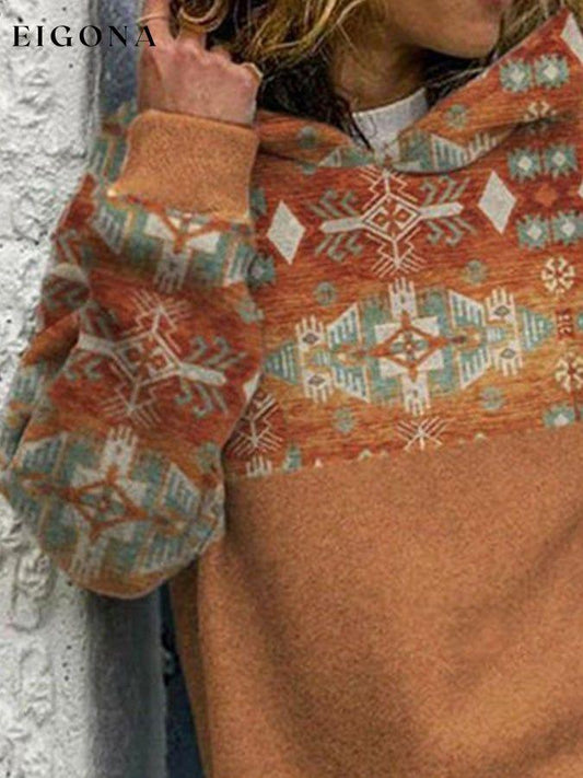 Western Ethnic Print Long Sleeve Casual Hoodie